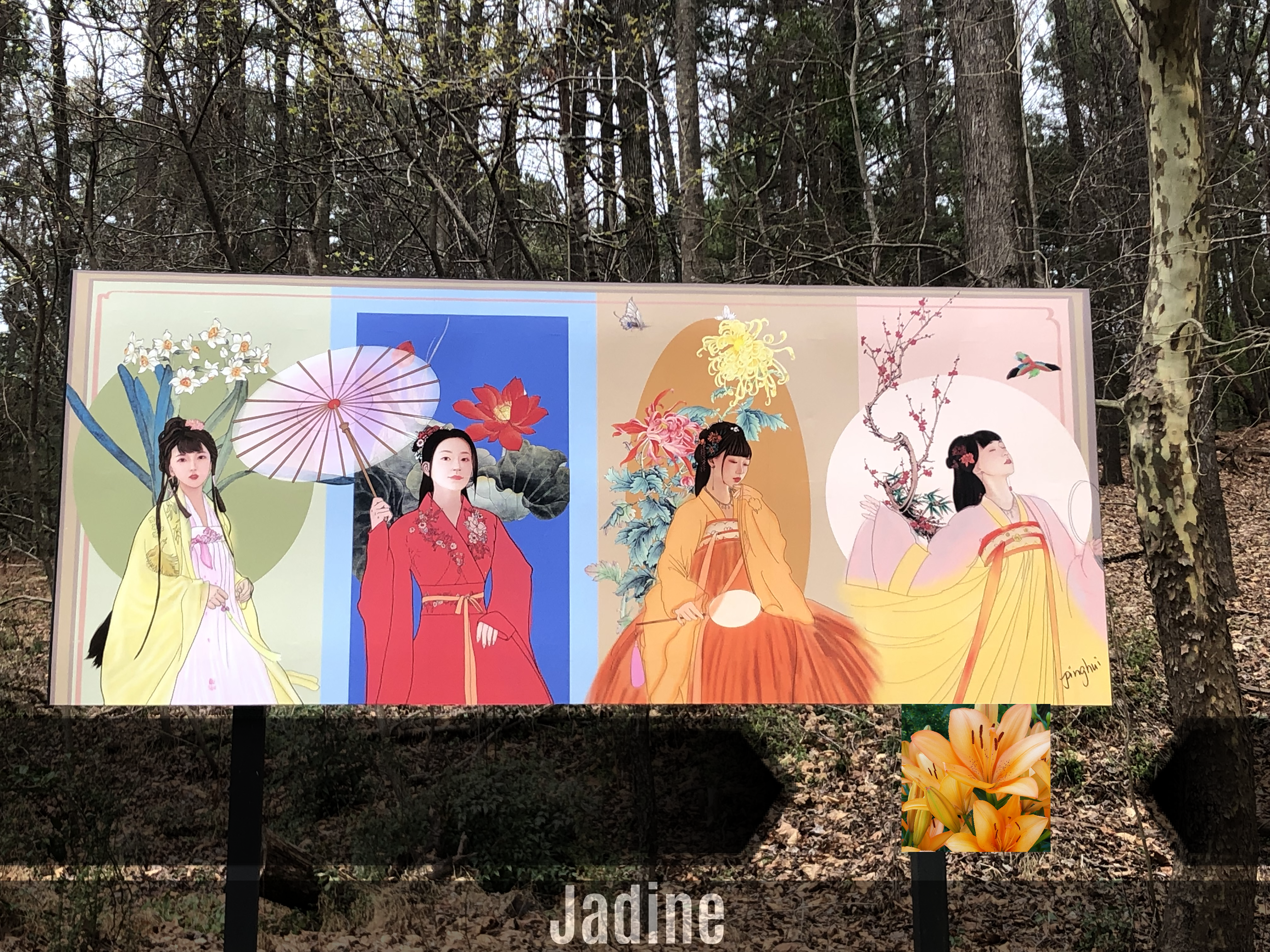 Jadine Ride, run, or walk on stencils on the trail at the North Carolina Museum of Art (NCMA)