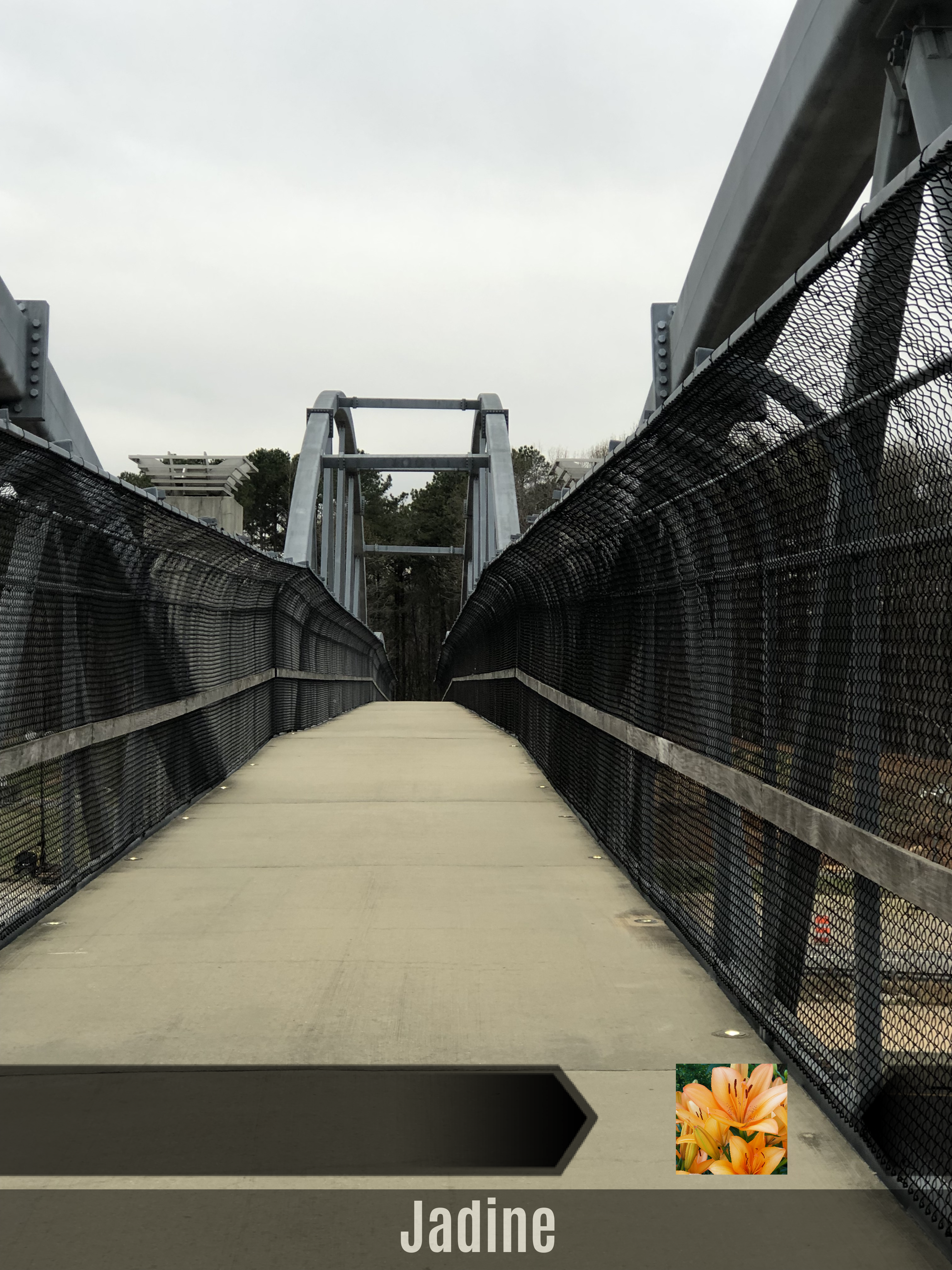 Jadine Pedistrian bridge crossing over 440 heading towards the NCMA, Raleigh