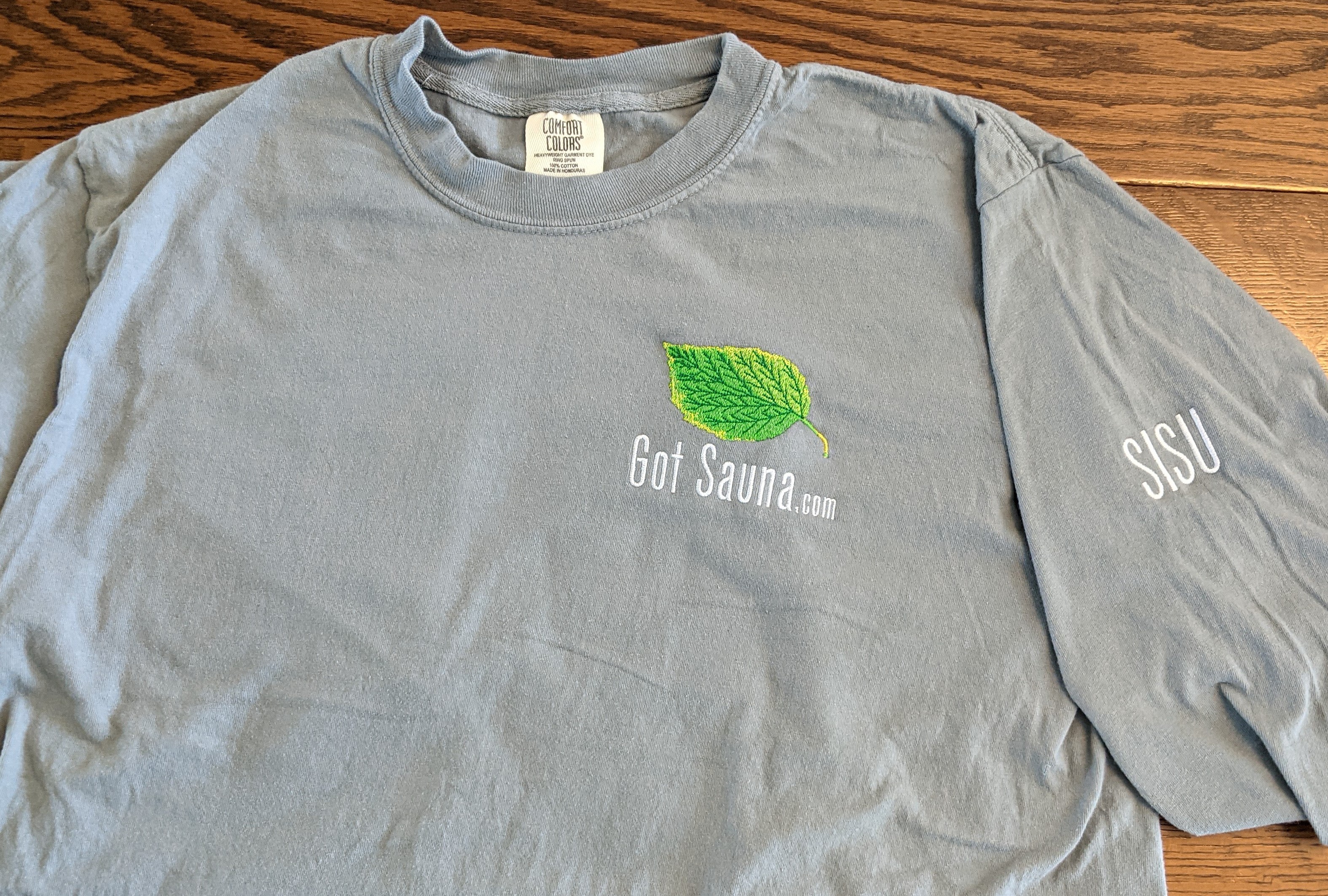100% Cotton true to size. High Quality Long Sleeve T- Shirt. Embroidered Got Sauna Logo left chest - SISU on the left sleeve Shirts will be delivered to you when you arrive for your session.